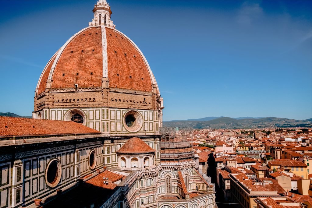 Una delle esperienze imprescindibili a Firenze? Ammirare la vista dalla Cupola di Brunelleschi che domina Piazza del Duomo, il Campanile di Giotto e i caratteristici tetti della città.